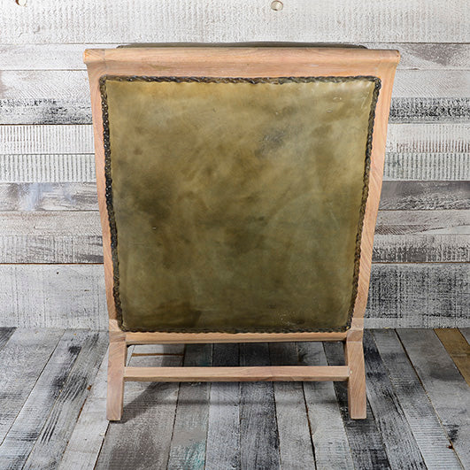 POLTRONA CON BRACCIOLI IN LEGNO DI TEAK SBIANCATO E CUOIO VINTAGE