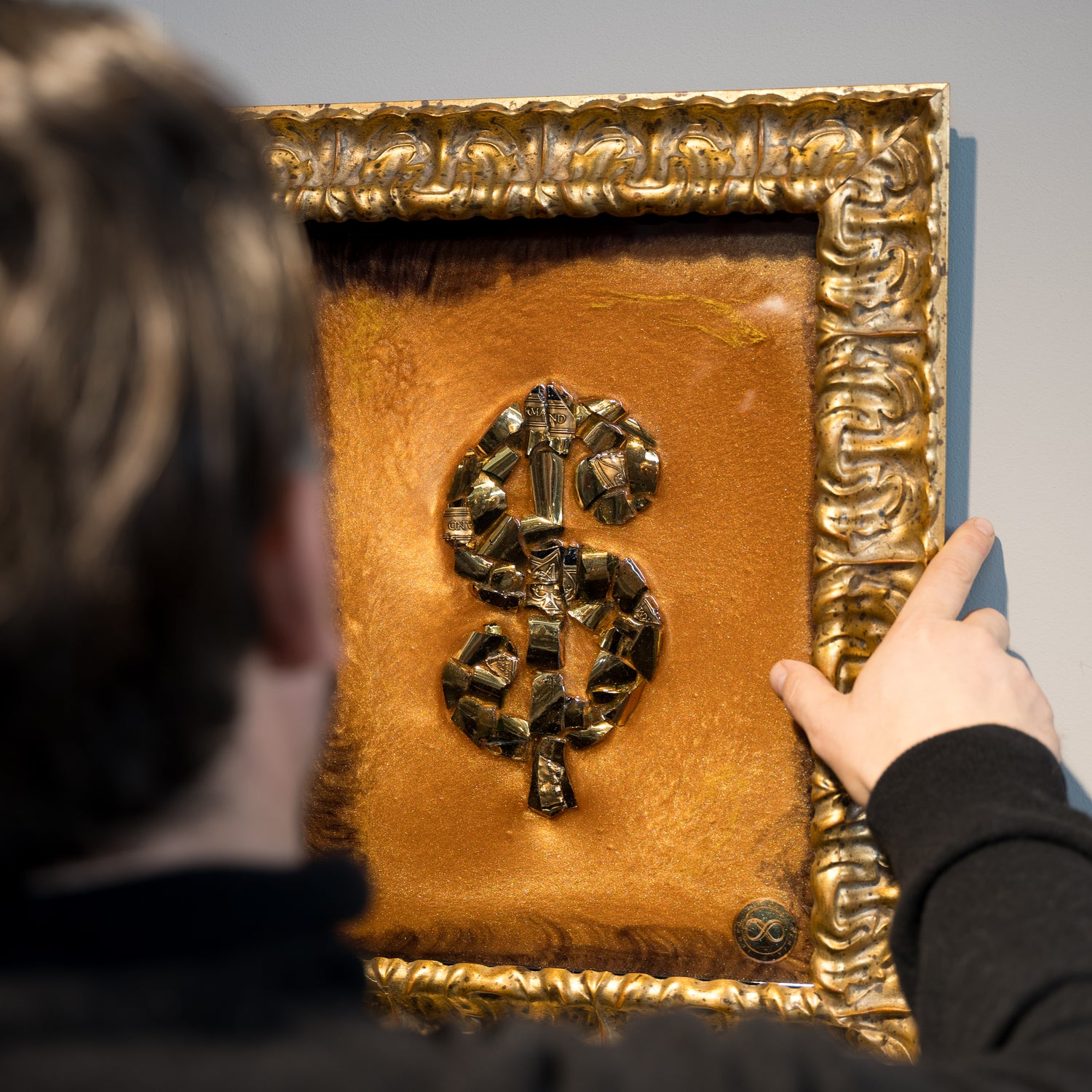Cornice Classica Dorata a Guazzo con Resina e Frammenti di Champagne Bollinger