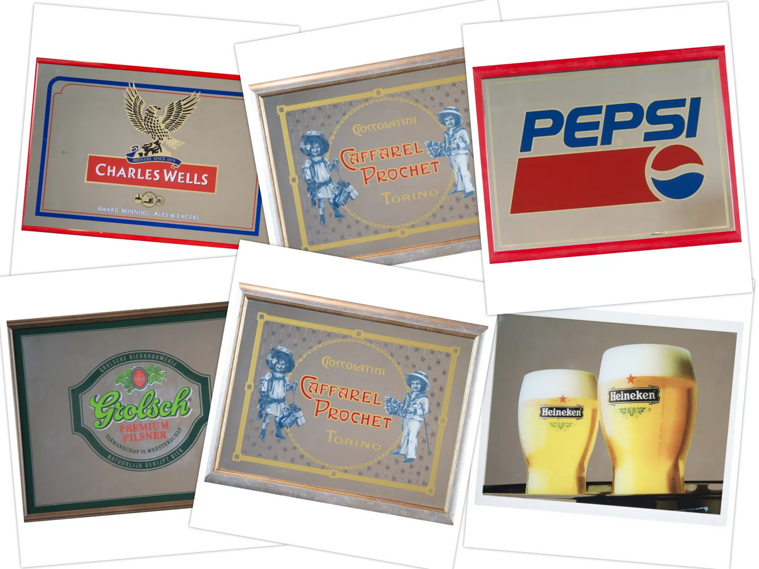 Siamo entusiasti di presentarti la collezione "Arte Senza Tempo" di specchi pubblicitari vintage!