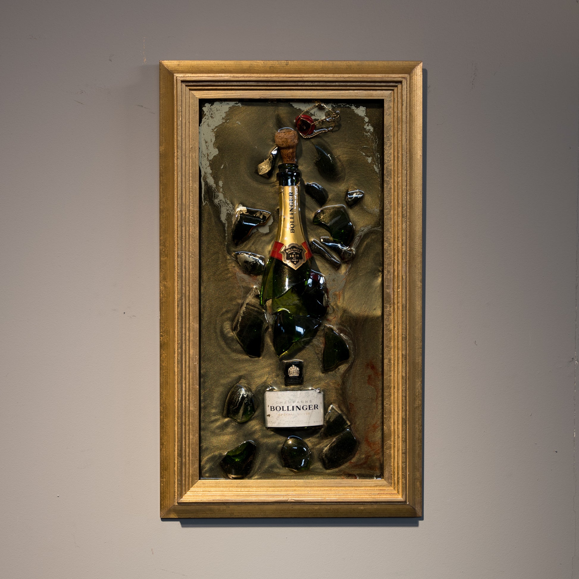 Cornice Classica Dorata a Guazzo con Resina e Frammenti di Champagne Bollinger
