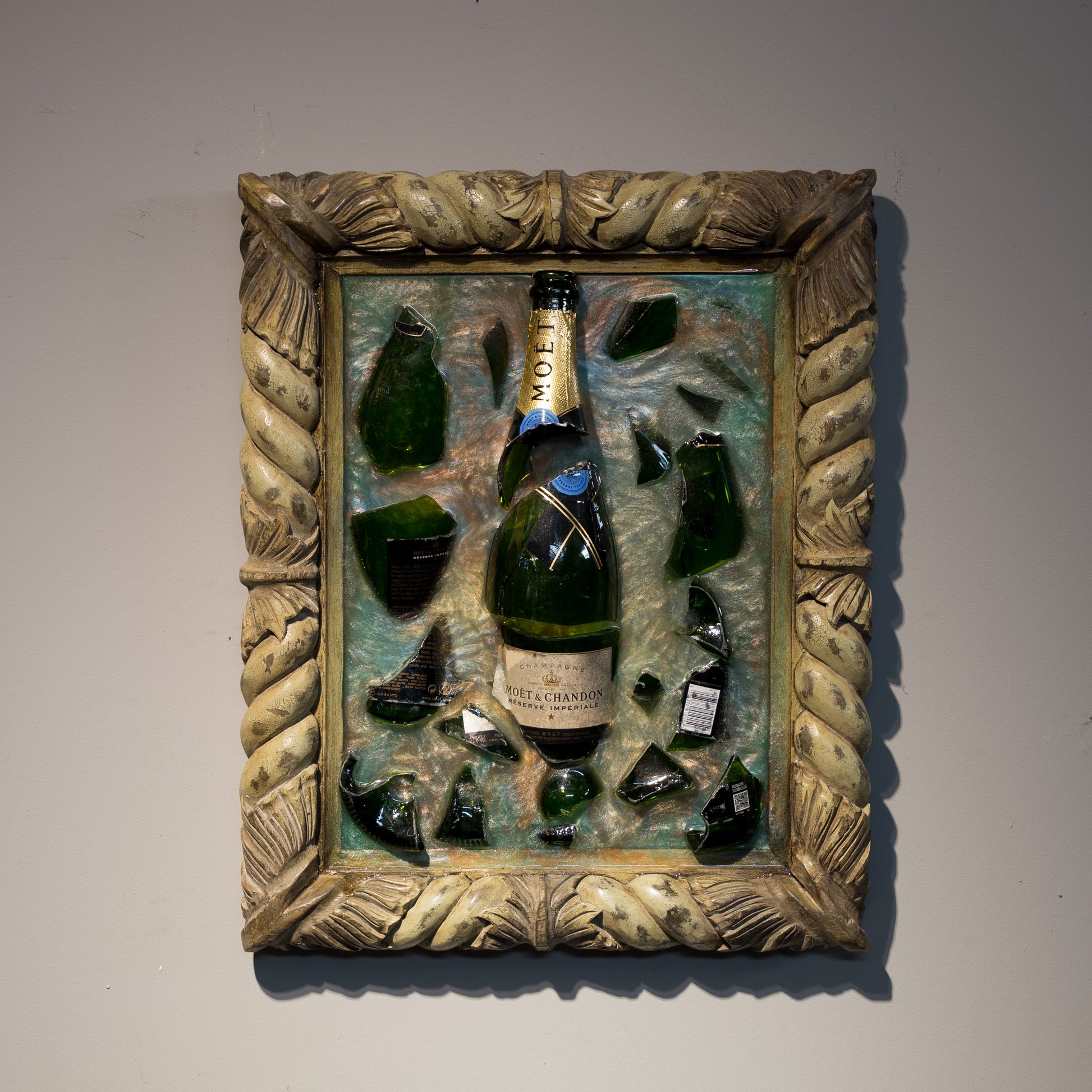 L'elegante design della cornice mette in risalto la bellezza intrinseca dei frammenti di Moët et Chandon, creando un'opera d'arte che trasuda lusso e raffinatezza. Questo pezzo unico è perfetto per aggiungere un tocco di classe e fascino a qualsiasi ambiente.