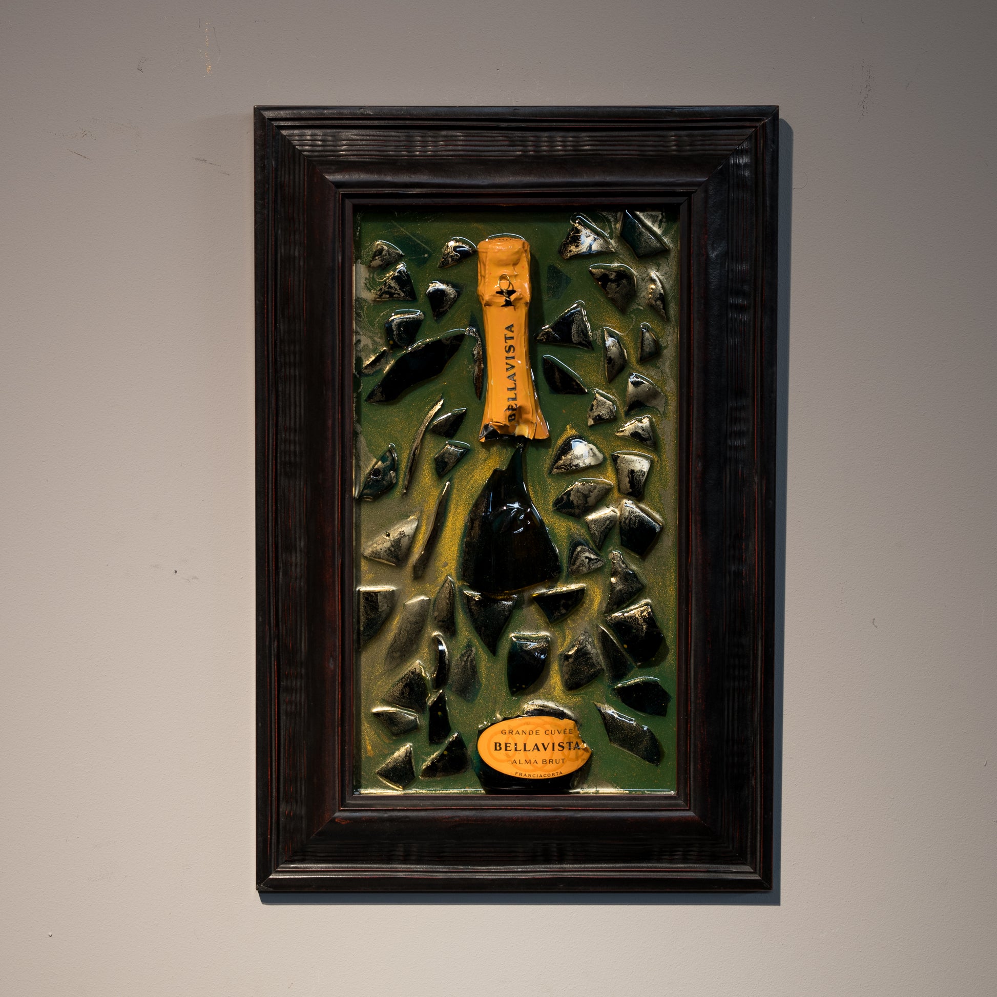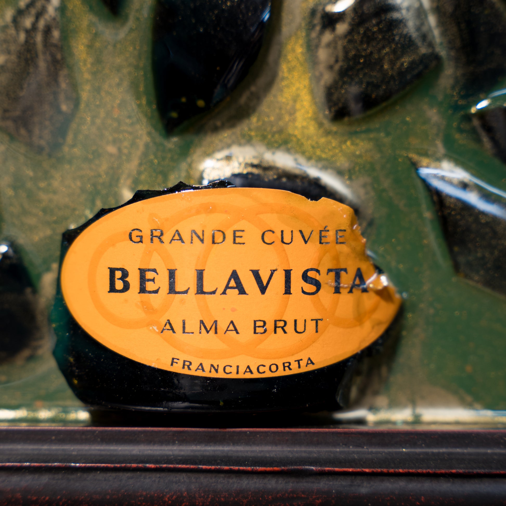 I frammenti di Franciacorta Bellavista, selezionati per la loro brillantezza e qualità, sono esaltati dalla cornice, creando un contrasto visivamente affascinante e una sensazione di calda raffinatezza. Questo pezzo unico è un'opera d'arte in sé, perfetto per aggiungere un tocco di classe senza tempo a qualsiasi ambiente.