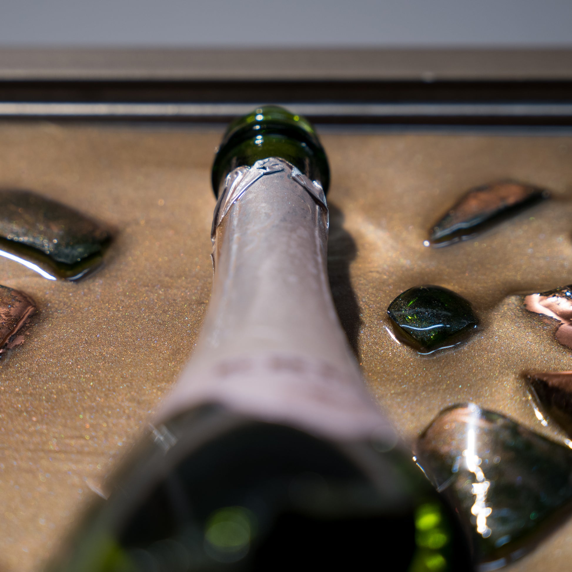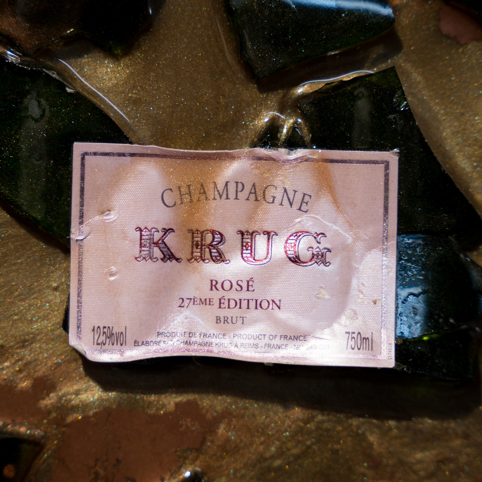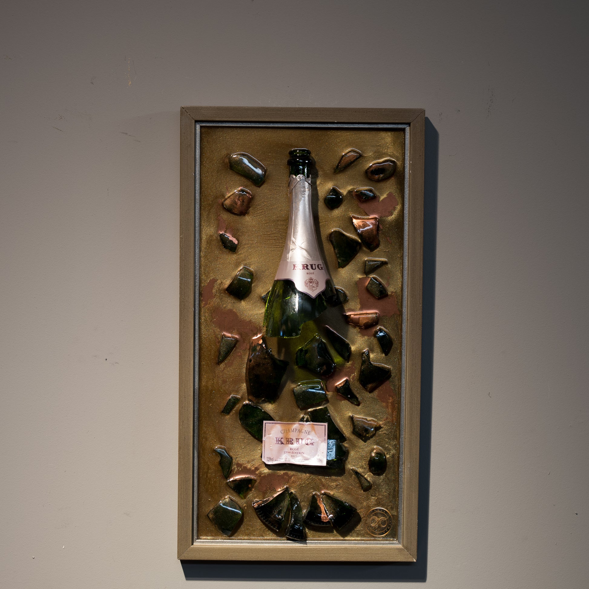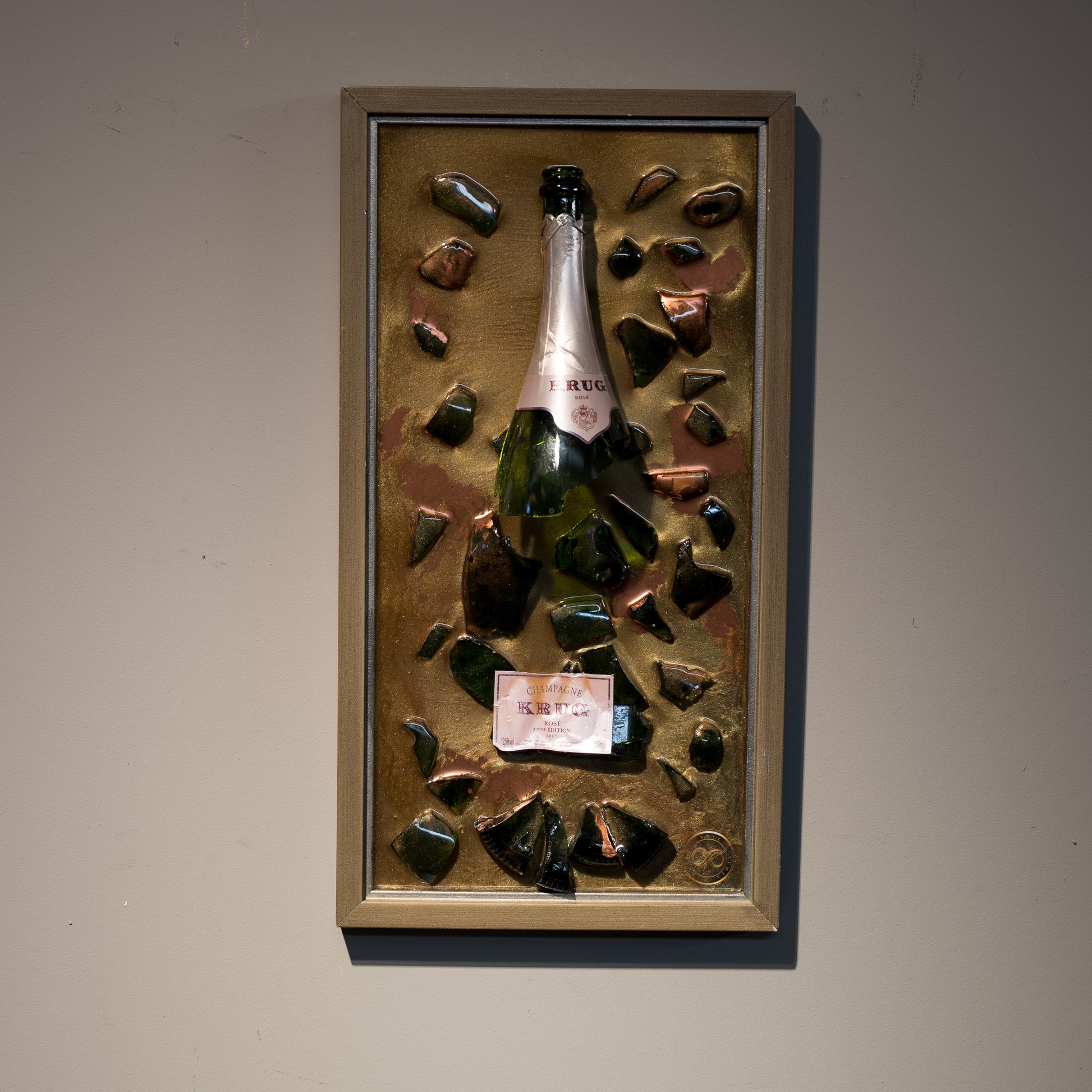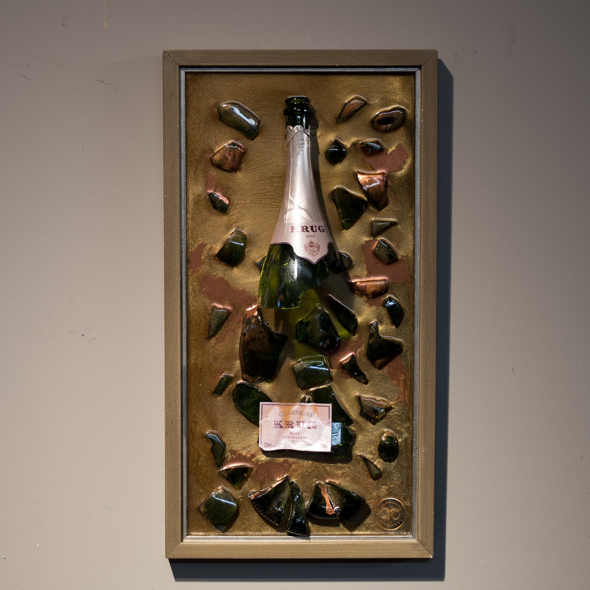 I frammenti di Champagne Krug, selezionati per la loro brillantezza e qualità, sono esaltati dalla cornice color Terra di Siena, creando un contrasto visivamente accattivante e un'atmosfera di calda eleganza. Questo pezzo unico è un'opera d'arte in sé, perfetto per impreziosire qualsiasi ambiente con un tocco di classe senza tempo.
