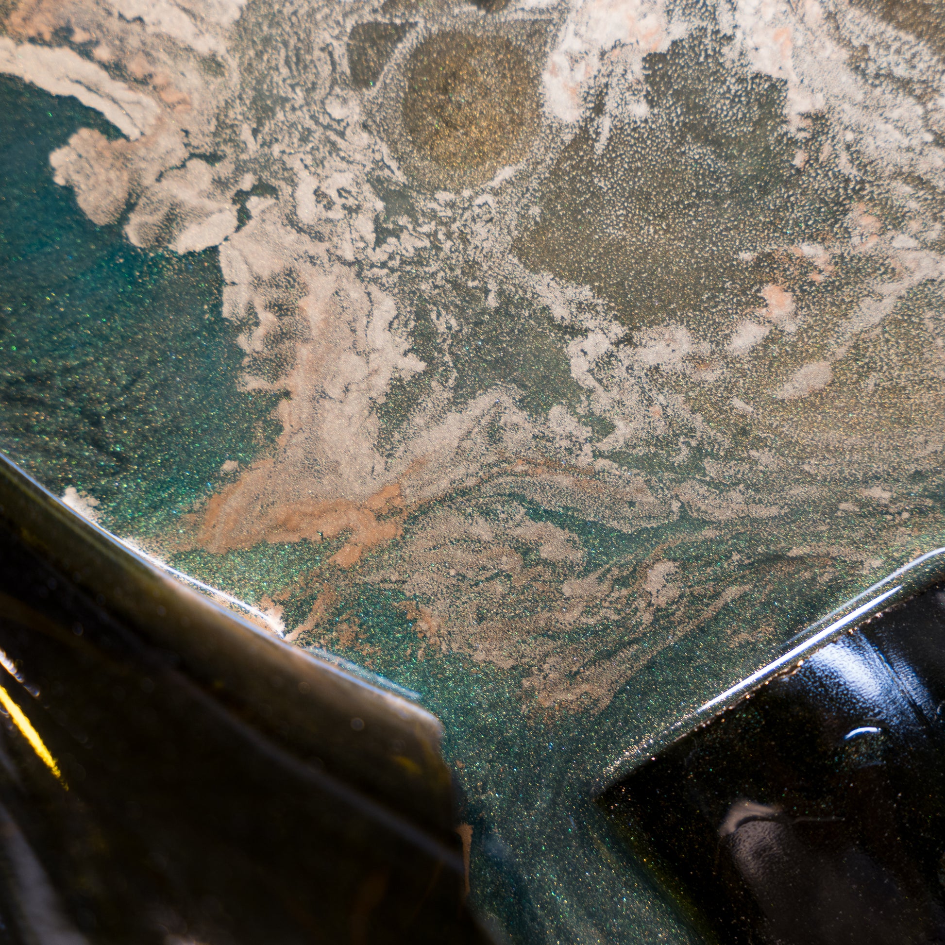 Realizzo a mano tutte le opere dalla cornice alla resina per fissare le bottiglie.