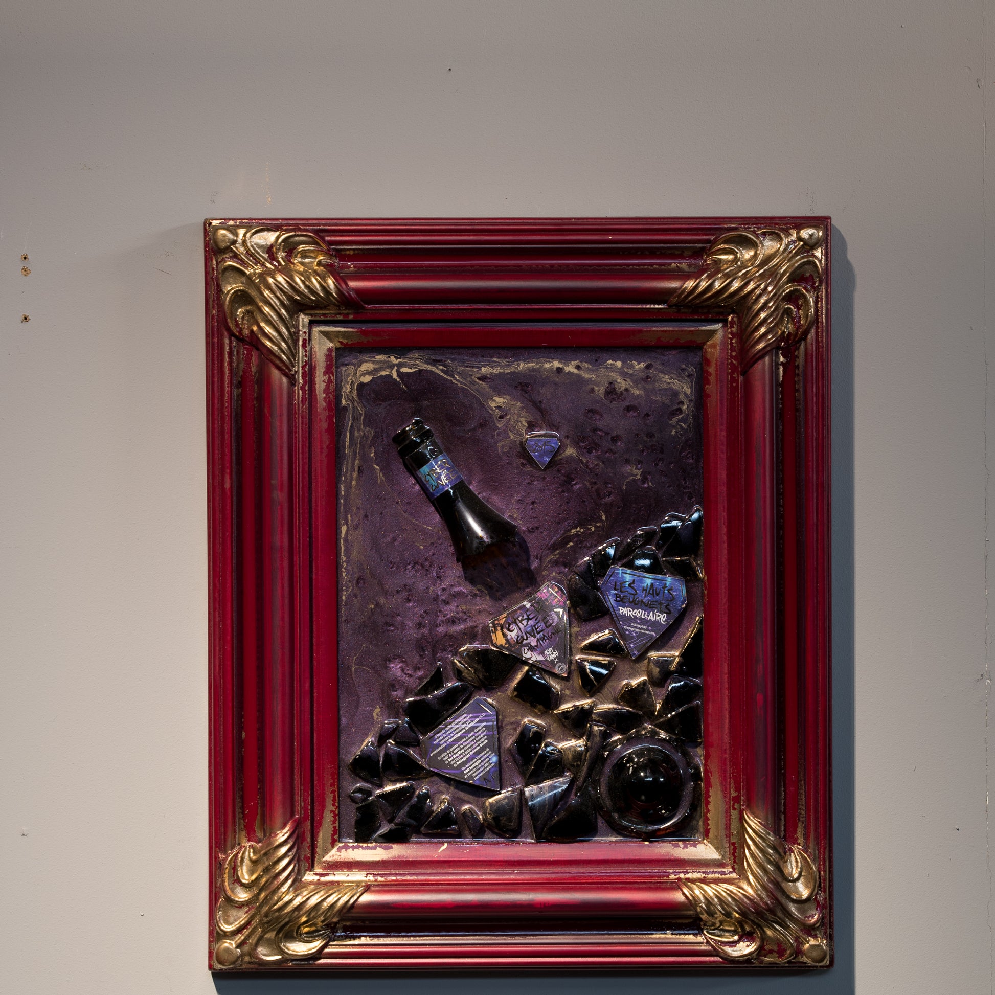 Realizzo a mano tutte le opere dalla cornice alla resina per fissare le bottiglie.