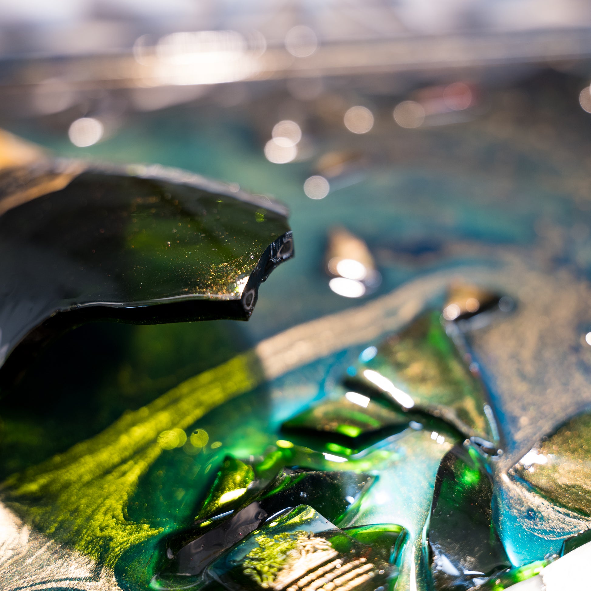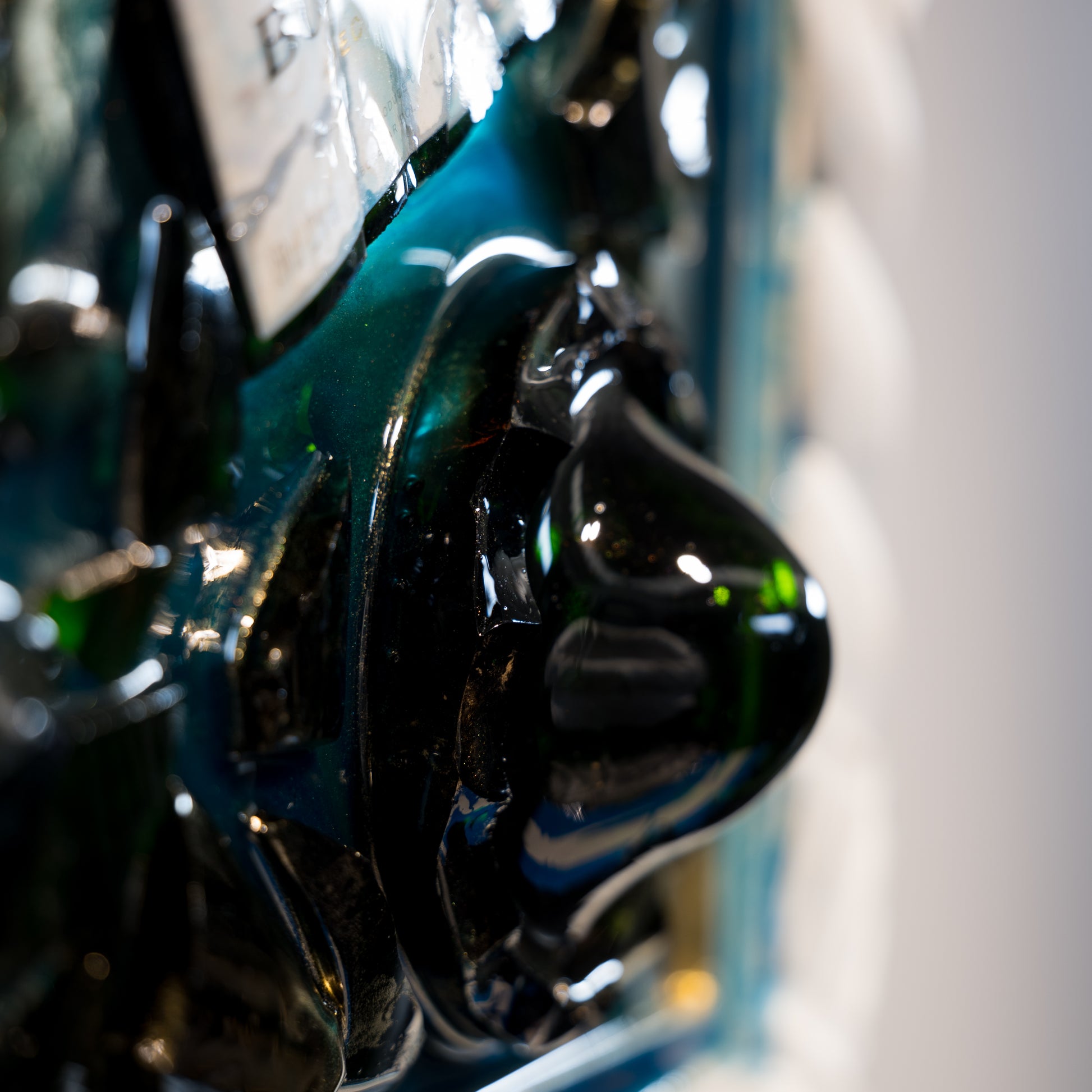 Realizzo a mano tutte le opere dalla cornice alla resina per fissare le bottiglie.