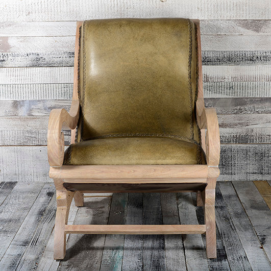 La poltrona coloniale in legno di teak sbiancato e cuoio arancio è un'elegante e rustica aggiunta a qualsiasi spazio abitativo. Realizzata interamente a mano, ogni dettaglio riflette l'artigianato di alta qualità e l'attenzione ai dettagli.