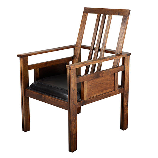 POLTRONA IN TEAK TINTANOCE E CUOIO NERO CUCITO A MANO