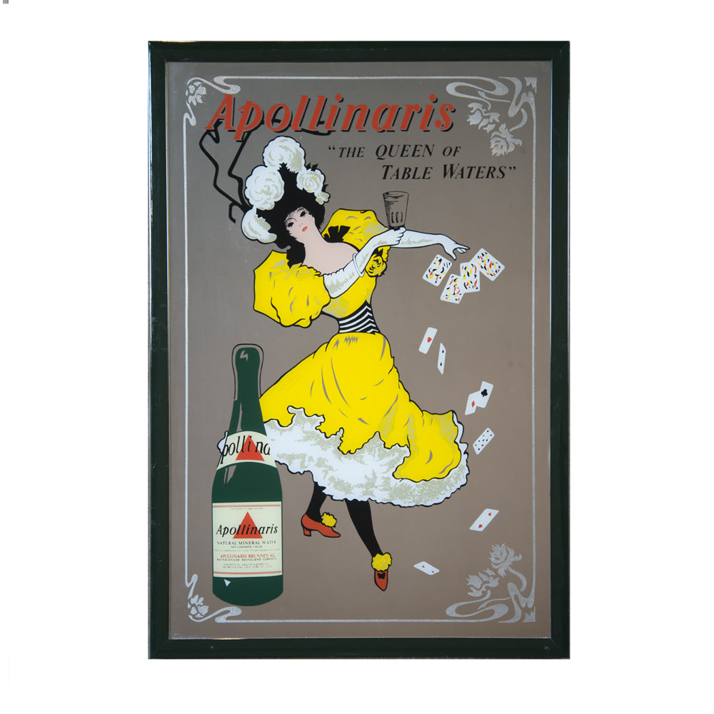 Porta a casa un autentico tocco di charme d’altri tempi con questo specchio pubblicitario vintage dedicato alla celebre acqua minerale Apollinaris, conosciuta come "The Queen of Table Waters".