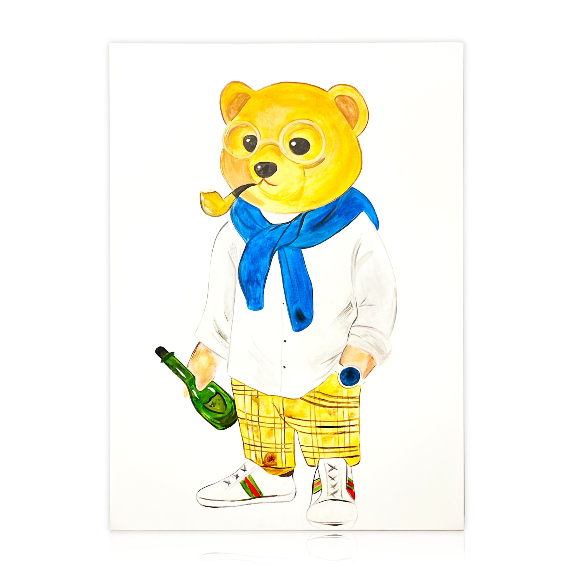 SPLENDIDO DIPINTO A MANO ISPIRATO A "BARON FILOU PER GUCCI & DOM PERIGNON MISURA 70X100