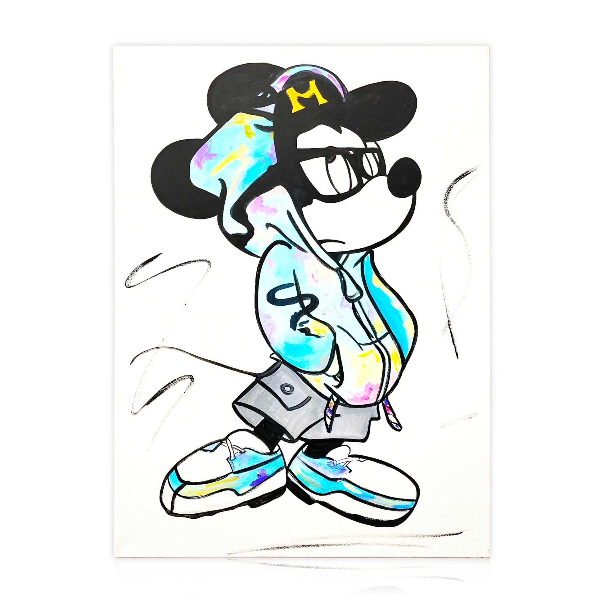 SPLENDIDO DIPINTO A MANO ISPIRATO A "TOPOLINO" METROPOLITANO MISURA 70X100